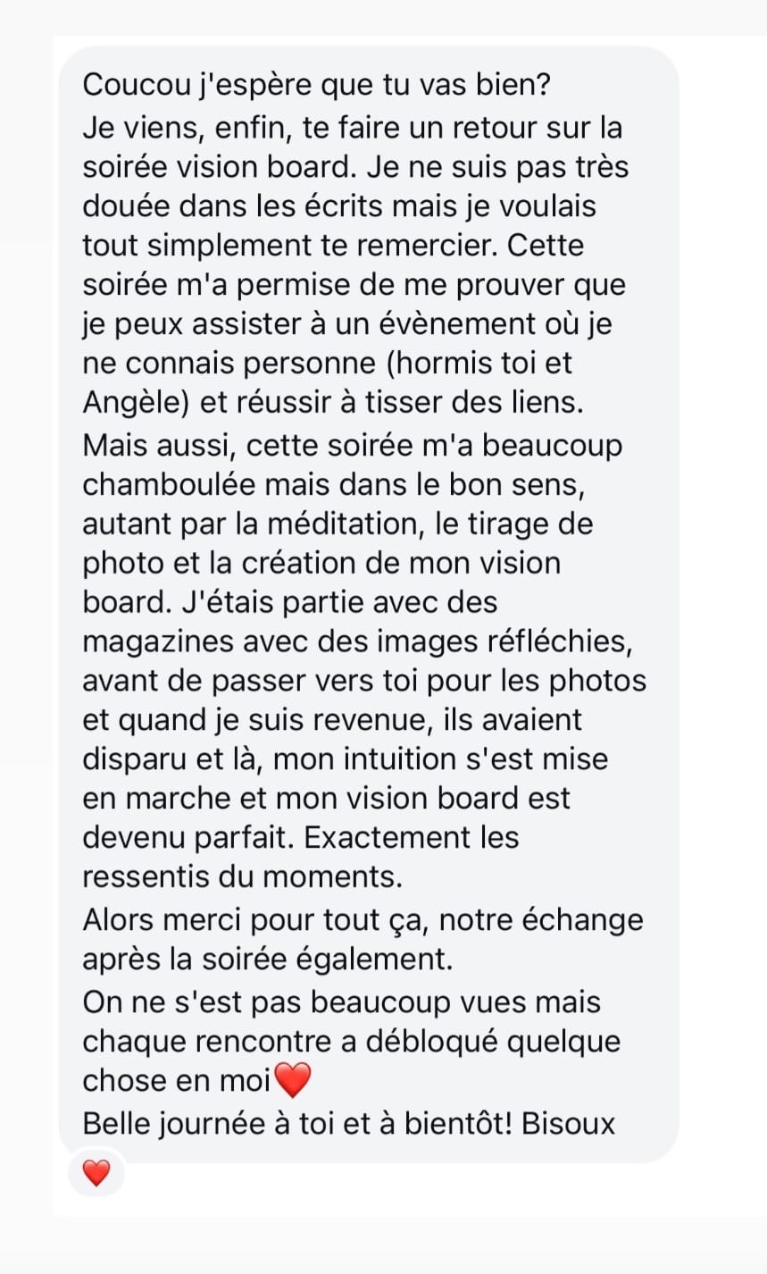Puis un temps de mise en mots de ton vision board